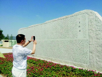 >游客驻足对道德经石刻拍照留念。 本报记者 陈之焕 摄
