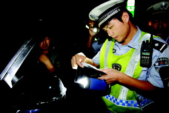 执法人员进行黄标车检查。(资料片)