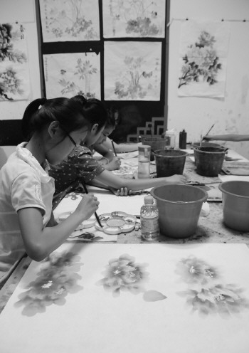 小学生画起画来有板有眼。