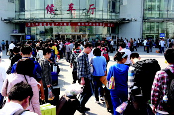 去年国庆节期间,淄博火车站旅客等待进站。本报记者 王鑫 摄