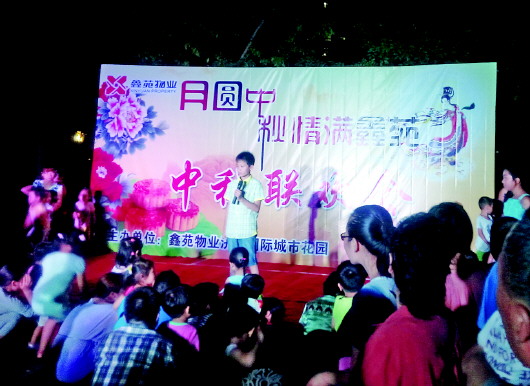 本报9月11日讯(记者 修从涛 通讯员 李伟) “月圆中秋、情满鑫苑”,8日中秋节晚上,由鑫苑国际城市花园社区物业在社区里举办了一场丰盛的中秋晚会。