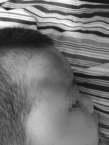 孩子的头部鼓起一个大包。 家长供图