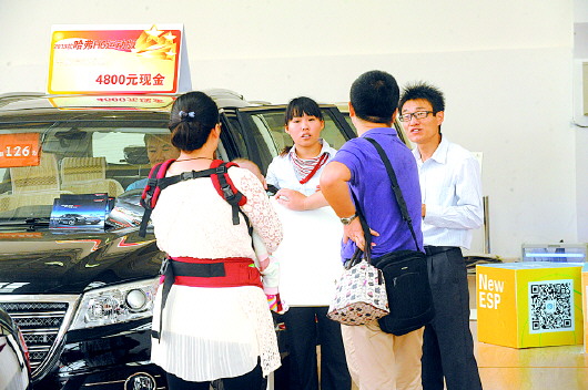 27日,来自全省各地的购车者络绎不绝,当天上午,不少顾客现场掏钱签单买车,有的经销商仅一上午就销售汽车29辆。