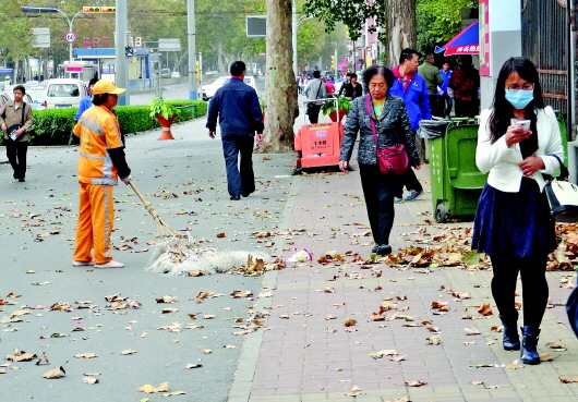 26日,历山路上,一位环卫工人正在清扫落叶。 本报记者 左庆摄