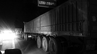大货车为闯禁区把道路当停车场