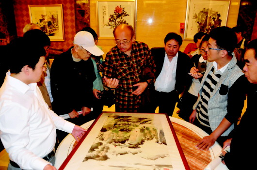 早上一大早就有两位先生前来观看画展作品,看到有工作人员就问,“今天都有哪些老师们来啊?他们几点能到?我们想要让老师们点评一下作品。”王先生说。