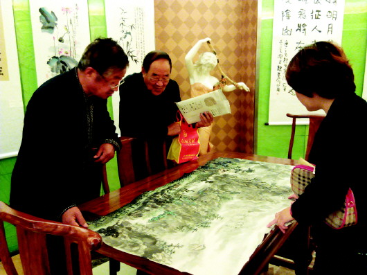 书画爱好者现场交流书画知识。本报记者 郗运红 摄