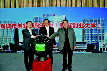 本报聊城10月26日讯(记者 刘云菲 通讯员 张士桥) 26日上午,聊城市创业孵化基地(创业大学)揭牌仪式在创业大厦31层大厅隆重举行。市委副书记、市长王忠林,省人力资源和社会保障厅副厅长李伯平,市委常委、常务副市长耿涛等人参加仪式。市委副书记、市长王忠林,省人社厅副厅长李伯平和市委常委、常务副市长耿涛共同启动聊城市创业孵化基地(创业大学)启动球。