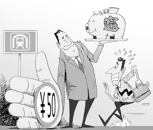 据新华网报道,近日,郑州市民在地铁站服务中心充值时,被工作人员告知最低须充值50元,且也只能充50元或50元的整倍数。相关负责人称,设“最低消费”主要是为了减少乘客充值的频率,节省乘客时间,为更多乘客提供充值服务。 漫画/张建辉