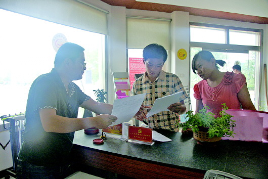 365服务大厅里为群众介绍新政策。