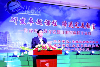 ◥2013年,日照市教育局局长、党委书记张传若在鲁豫皖新教育联盟日照市实验开放周活动上致辞。