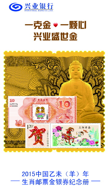 兴业银行独家全球限量发售“2015中国乙未(羊)年生肖邮票金(银)券纪念册”