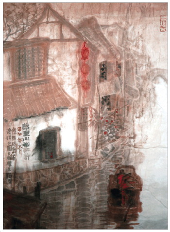 “此外,来到江南园林也让我再次认识到写生在山水画创作中的重要作用。就山水画而言,写生的过程,亦是艺术创作的过程。以意造境,对景写生是创作重要的方法之一,我们要不断到生活中去、师自然师造化,积累素材,在山水间发现新的表现对象。在山水创作上坚持师法自然造化,能让自己的笔墨在万物之中得到印证,感受到景外之景,象外之象,意外之意,达到画有限而意无穷”,周石峰说。创作真切心理体验外在物象的结果,是对自然界变化无常的景致,入微关照后的理想化境界化成笔下具体的艺术形象。画山水画,首要的是净化灵魂,进入自然而然、自由自在的表现状态。周石峰的写生作品也如他的轻烟山水作品一样,有沛然天地间之灵气流荡其中,虚空浑然的笔墨中无媚俗之气,在缥缈如梦的幻觉世界里,以极其丰富而敏感的心灵创造了一个超然物外的绘画空间,在这个空间里充盈着生命的元气和对“天人合一”的感悟。 (东野升珍)
