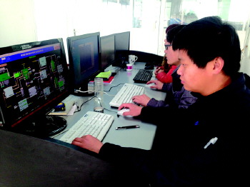 15日,记者在泰安市餐厨垃圾处理厂看到,2名工作人员通过电脑控制餐厨垃圾处理过程,每辆餐厨垃圾专用车和垃圾桶都装有电子芯片,工作人员可通过电脑随时调配车辆定点定时收取餐厨垃圾。