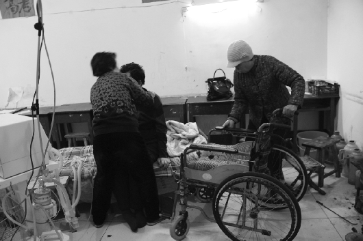 没过多久,原本躺在床上的王伟就要起来了,坐到轮椅上,准备等着孩子们的到来。魏秋菊说如今自己一个人已经抱不动王伟了,每次起身都要邻居帮忙,正说着,邻居来了。她们两个人配合着,一起很费劲地将王伟拖到了轮椅上。