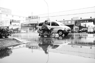 21日,枣庄出现雨夹雪天气,但是雨量多雪量少。 本报记者 袁鹏 摄