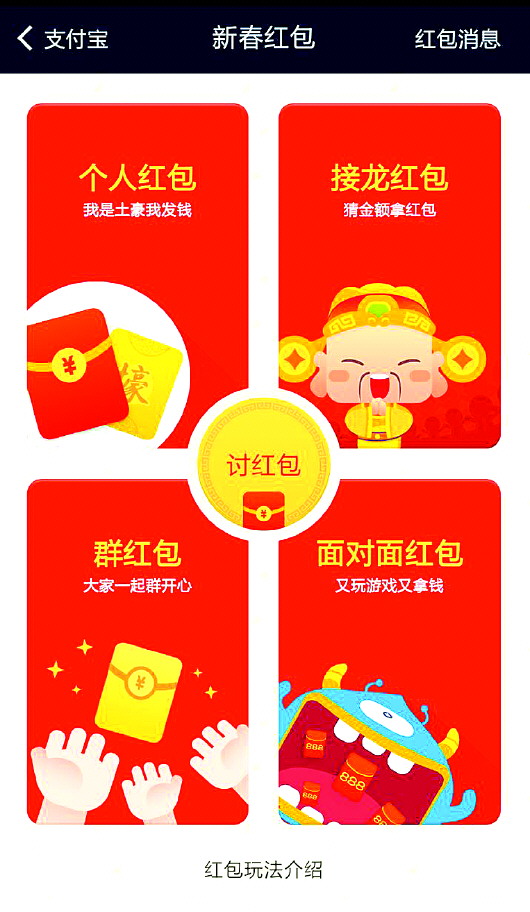 近日,部分用户收到了支付宝软件的更新提示,提示中主打“亿万红包”概念,新版软件特设红包专区,玩法更加多样,内容包括个人红包、接龙红包、群红包、面对面红包等。而微信也着重改善了红包功能,来迎战即将到来的春节红包大战。
