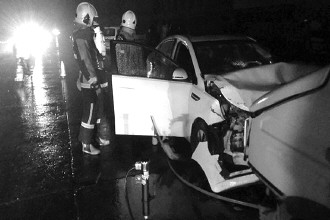 24日晚,山亭桑村镇葛庄村附近发生一起交通事故,一辆轿车与一辆依维柯相撞,轿车驾驶室严重变形,驾驶员则被死死卡住。山亭消防救援人员赶到后,利用破拆器材对轿车驾驶室的车门进行破拆、扩张,经过四十分钟努力,终于将被困驾驶员救出送医。据了解,当天阴雨路滑,司机可能对路况估计不足。 本报通讯员 孔超 本报记者 袁鹏 摄影报道