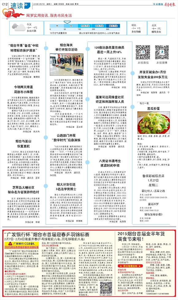 第J12版:今日烟台·速读