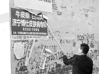散布在城乡街头小巷的非法户外医疗广告,不仅影响城市面貌,其虚假广告宣传也容易误导、坑害消费者。打着白癜风研究院的幌子,却私下招揽消费者就诊,此次整顿中,任城博仕门诊部因违规宣传被责令停业整顿,济宁曙光医院被吊销外科诊疗科目。