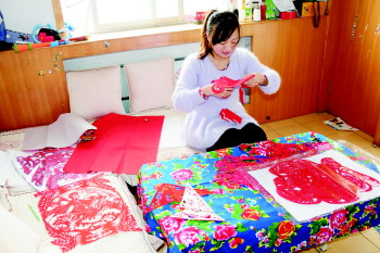 ▲关丽每天都会把大量的时间放在剪纸上。