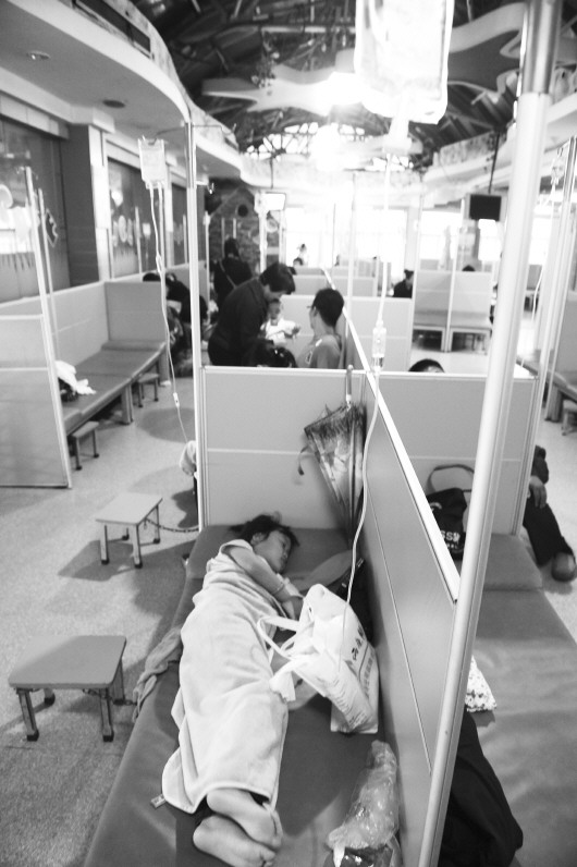 济南市中心医院,病人正在接受治疗。(资料片)