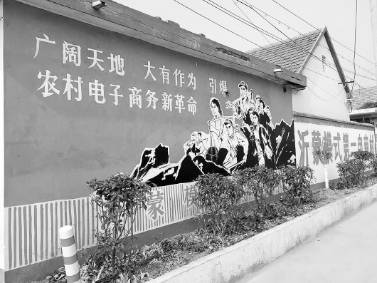 平邑县兴仁庄村里遍布电商刷墙广告。
