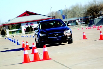 作为东风英菲尼迪首款国产车型,Q50L的确有着不俗的实力,这一点小编在之前的青海高原试驾中就有深深的体会,此次在北京的试驾场地,虽然是一次简单的赛场体验,简短的几个测试环节,这台2.0T发动机的平顺表现以及强劲动力却带给了大家很深的印象。对于东风英菲尼迪Q50L的平顺表现而言,它可以很自信地说与奔驰轿车有着相同的平顺表现,奔驰的发动机与变速器的调校永远要确保行驶的舒适与平顺,而现在它的这种特性又被完全转移到了这台国产的Q50L上。