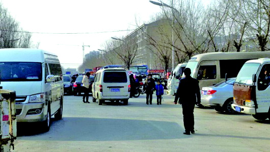 由于纬二路为四车道,家长私家车停靠在马路两边,其他车辆还能通行。而第二实验小学所临近的经四路仅为双车道,放学前5分钟已被私家车和小摊贩堵得水泄不通。