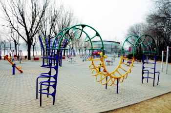 1月29日,由于天气寒冷,锦绣川景区内也变得冷冷清清,游乐、健身器材鲜有人使用。