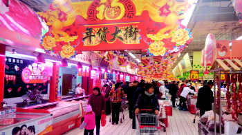 29日上午,记者走访泰城各大商超,不少商家一星期前就开始布置“年货大街”,喜庆的宣传牌遍布商场,各式各样的年货礼盒也摆到货架上,吸引不少市民围观选购。红灯笼、羊宝毛绒玩具、年画等,让人感到浓浓年味儿。