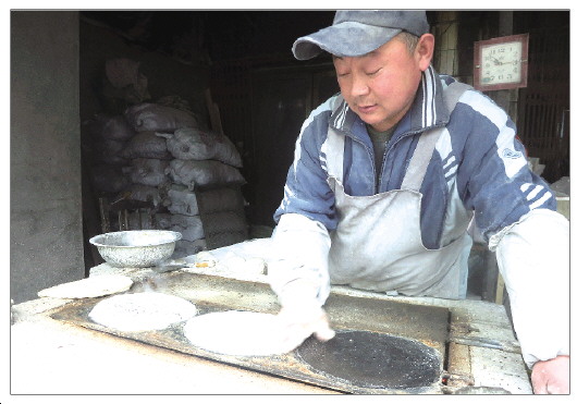 小小的烧饼可有大门道,每天下午金师傅就用独家秘方和面,“和面是个精细活,必须得用老面当引子,这样做出来的烧饼才劲道。”金师傅告诉记者,和面这道工序要在头一天下午进行,和好的面放在盆里,醒上半宿到第二天凌晨就可以用了。凌晨两点,金师傅一家人准时开工,经过十几个小时的发酵,面已经在盆里整装待发,开始了新的使命。在制作房里,烧烤炉引起了记者的注意,金师傅向记者介绍,这个炉子是他设计以后,专门找工人制作的,烧烤炉用水泥砌成,中间空心用来放碳,炉子顶端架着两块可以来回上下翻动的铁板,烧饼就是通过这套工具烘烤出来的。
