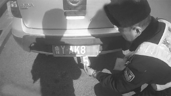 日前,烟台市交警支队第四大队执勤民警在莱山区清泉路附近巡逻时,发现一辆灰色轿车停在非机动车道内,民警正打算张贴违停告知单时,越瞧越觉得车辆号牌别扭,走近细看,该车号牌的“5”系一块数字磁铁片吸附在原号牌数字“8”上,原号牌为鲁YAK8××,这么一遮挡变成了鲁YAK5××。