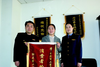 拿到合格证后郭女士给12315送来了锦旗表示感谢。 本报记者 刘伟 摄