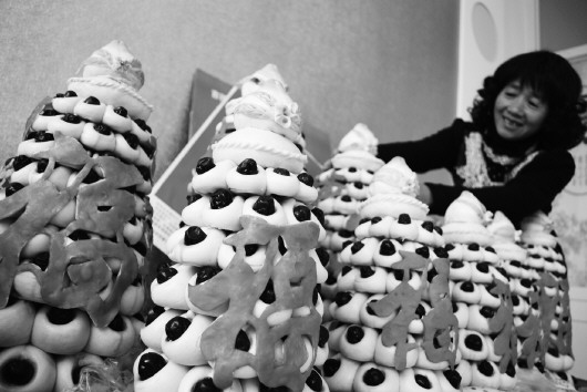 腊月二十四,滨州市阳信县信城街道办事处牛王堂村五十多岁的魏连恒和他的妻子刘秀华正忙着做完最后一架“步步糕”。十年前,魏连恒夫妇重新拾起了这门手艺并一直延续下来,如今,他们将这一传统工艺活越做越大、花样品种越做越多,光花馍就有十六个品种,每年临近春节,他们做的“步步糕”很快就销售一空。