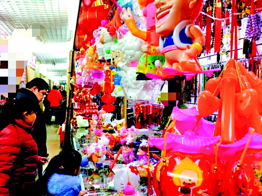2日上午,市民张女士在女儿的一再央求下,来到中恒商城,为女儿购买了一个喜羊羊造型的玩具灯笼。“马上就到元宵节了,女儿的小伙伴们都提着灯笼玩,这两天孩子一直央求我买个灯笼。”张女士说,经过一番讨价还价,她花20元钱给女儿买到了这款能发声、能吹泡泡、能亮灯的玩具灯笼。