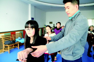 针对很多女生学员“跪跳起”动作完成不利落,奥林国际健身中心中考体育达标指导班主教练徐磊将动作一一分解。“技巧考得是身体的控制力。”徐磊说,跪跳起要求对小腿、大腿、身体韵律等的控制力,通过前后迅速摆腿等分解动作,增强学员身体控制力。