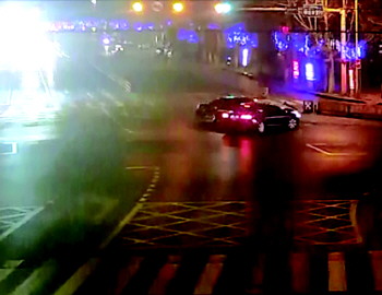 勘查过现场后,民警接着调取了该路口的监控录像,事发当时,路口黄色信号灯开始闪烁,但两车均未减速,奥迪轿车快速沿吴泰闸路自西向东行驶,黑色奔驰则开始左转。随后,两车猛烈撞在一起,试图左转的黑色奔驰车撞击后失去控制,又撞上了路边的防护栏。