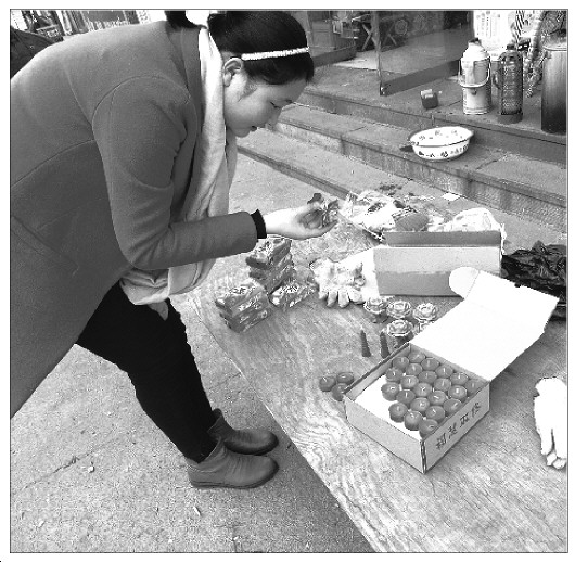 “普通的蜡烛燃烧时会伴随着黑烟,还经常会出现倒芯现象,燃烧时间不久。而这种环保蜡烛不但燃烧时无烟无味,还能持续烧4个小时,放在家门口照一整晚足够了。”店主王女士说,这种蜡烛每个卖3元钱。而与该产品大小相似、我们常见的元宝形蜡烛,一元钱就能买到4个。