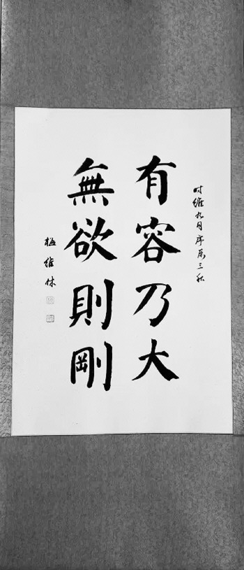 梅维林认为,书法可以陶冶自己的情操,书法需要的是耐心和持久的坚持,因此在练习书法的同时,可以修心养性,这对于提高自己的素养,很有帮助。