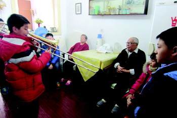 4日,青岛鞍山二路小学的“安安雏鹰小队”来到阜新路街道东太平社区,为社区里两户空巢老人带去暖暖的温情。孩子们表演合唱、相声、小提琴演奏等节目,并为老人打扫卫生。原本安静的屋子一下子热闹起来,充满生机。