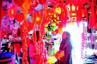 4日,在市区小商品批发市场,不少市民前来选购过节的商品。“现在都讲环保过节,不燃放鞭炮,买几个红灯笼挂在家里和家人一起过个团圆节一样红火。”店主介绍。