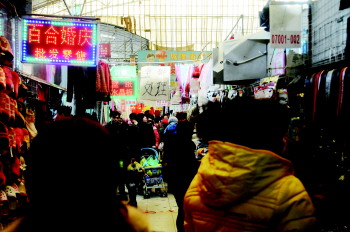 5日,记者在城隍庙市场看到,横七竖八的货品摆在地上,让这个老市场显得有些凌乱。清扫员一遍遍地清扫,男女老少挤满了窄窄的过道,推货品的商户艰难地进进出出。新的搬迁计划表还允许阳光透过棚顶照亮市场至本月底,而熟悉的讨价还价声看不出它不久后要被拆除。