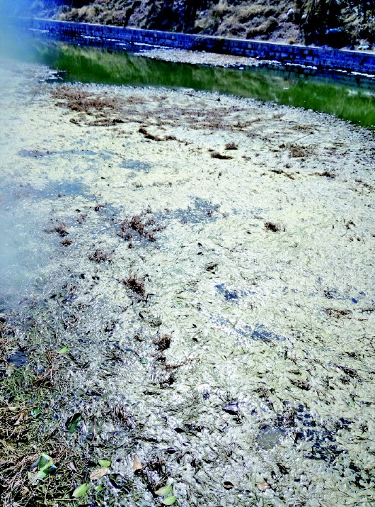 巨野河的一段河段变得异常浑浊。 本报见习记者 孙业文 摄