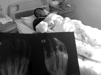 家住鄄城县红船镇的孙老汉情况更为严重,右手中、环指近节指骨骨折,中指近节畸形,伸肌腱劈裂。“今年春节期间烟花爆竹炸伤的病人总体来讲减少了,但伤情比去年严重。”博爱医院急诊科工作人员介绍说。