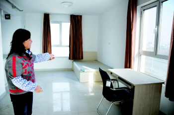 物业工作人员介绍保障房的设施。 (资料片)