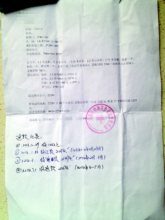 据了解,和杨女士有同样遭遇的消费者不在少数。除杨女士所说的按月返还外,东方邦太还与其他顾客约定一次性返款。实际上,对不同的顾客,东方邦太承诺的返款期数、时限、金额等,并不相同。2014年3月份,赵先生在东方邦太买了一组橱柜,并先行支付18000元费用,东方邦太承诺一年后返还50%。算下来,赵先生买的这组橱柜价格为9000元。