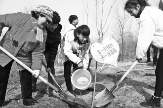 在植树节前夕,9日,布谷夼、西门外、同德、鸿武、石河、塔山六个社区居民和职业学院学生共100余人,开展了以“共建绿色家园”为主题的植树节活动。此次植树活动共种植乌桕树300余棵。