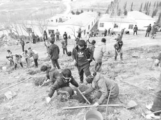 8日,竹岛街道梦海社区发起植树活动,几十名少年在家长陪同下在陶家夼后山上种上小树苗,为地球添绿。