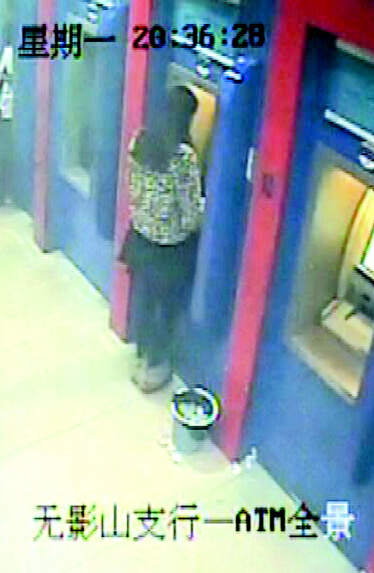 嫌疑人周丽在银行取款。 监控截图